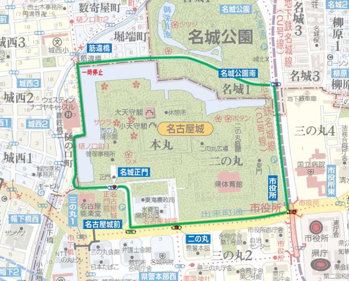・1周約左周り2.8Kmの名古屋城を3周して計測 ・任意の場所からストップ状態からスタート ・3周してスタート位置に停車して計測 ・安全運転で他車や歩行者の迷惑にならないように走行 ・コース内に信号5ヶ所、一時停止1ヶ所あります。 |